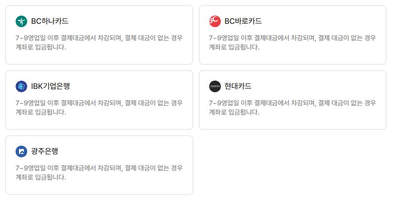 내 결제일에 지급되는 경우, 신용공여기간에 따라 다다음 달에 지급될 수 있습니다.