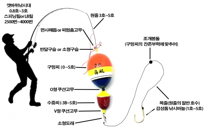 - 주로 고정된 위치에서 낚시를 하며, 수심 조절이 중요합니다.