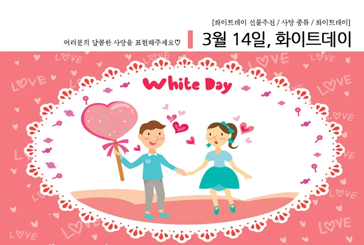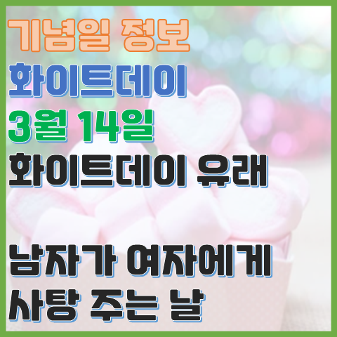 - "화이트"라는 이름은 순수함과 깨끗함을 상징하며, 주로 **흰색 사탕**, **마시멜로**, **화이트 초콜릿** 등 흰색 계열의 선물을 주고받는 문화가 형성되었습니다.