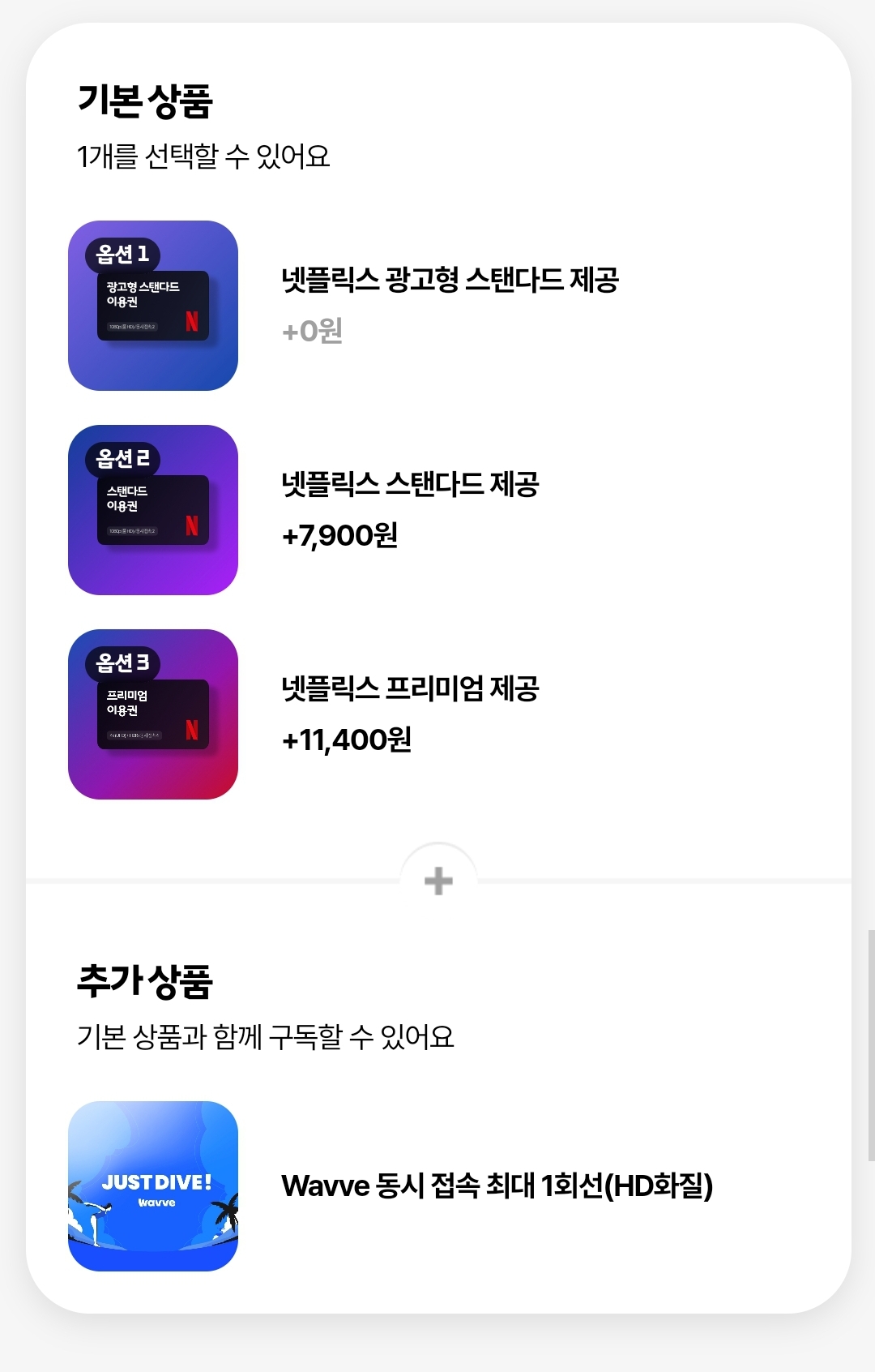 - **기본 (광고 포함)**: 저렴한 가격에 광고가 포함된 요금제.